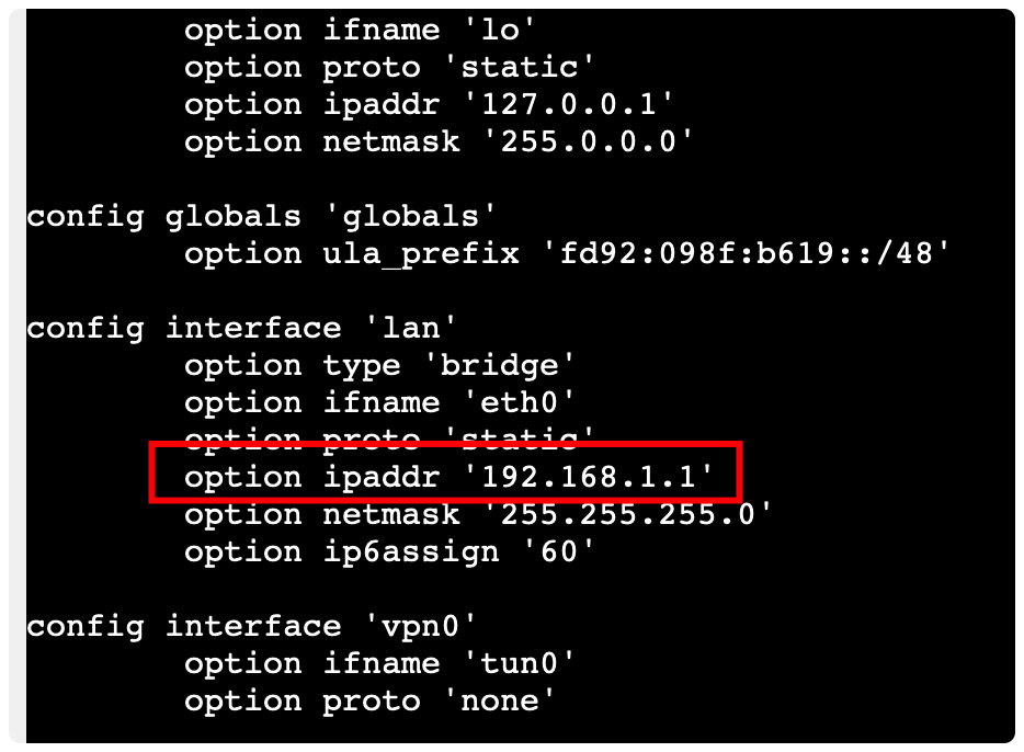 1 | vi /etc/config/network |