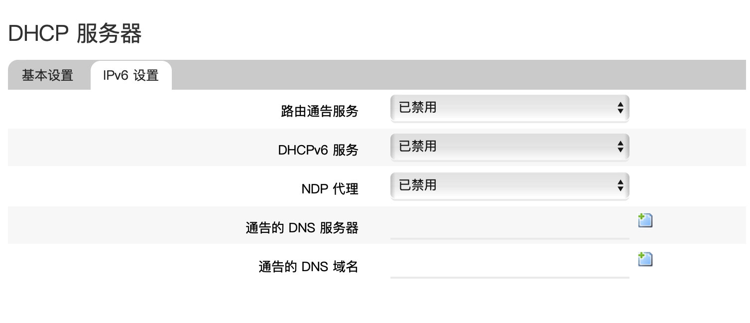 DHCP服务器 -> IPv6 设置中全部选择已禁用